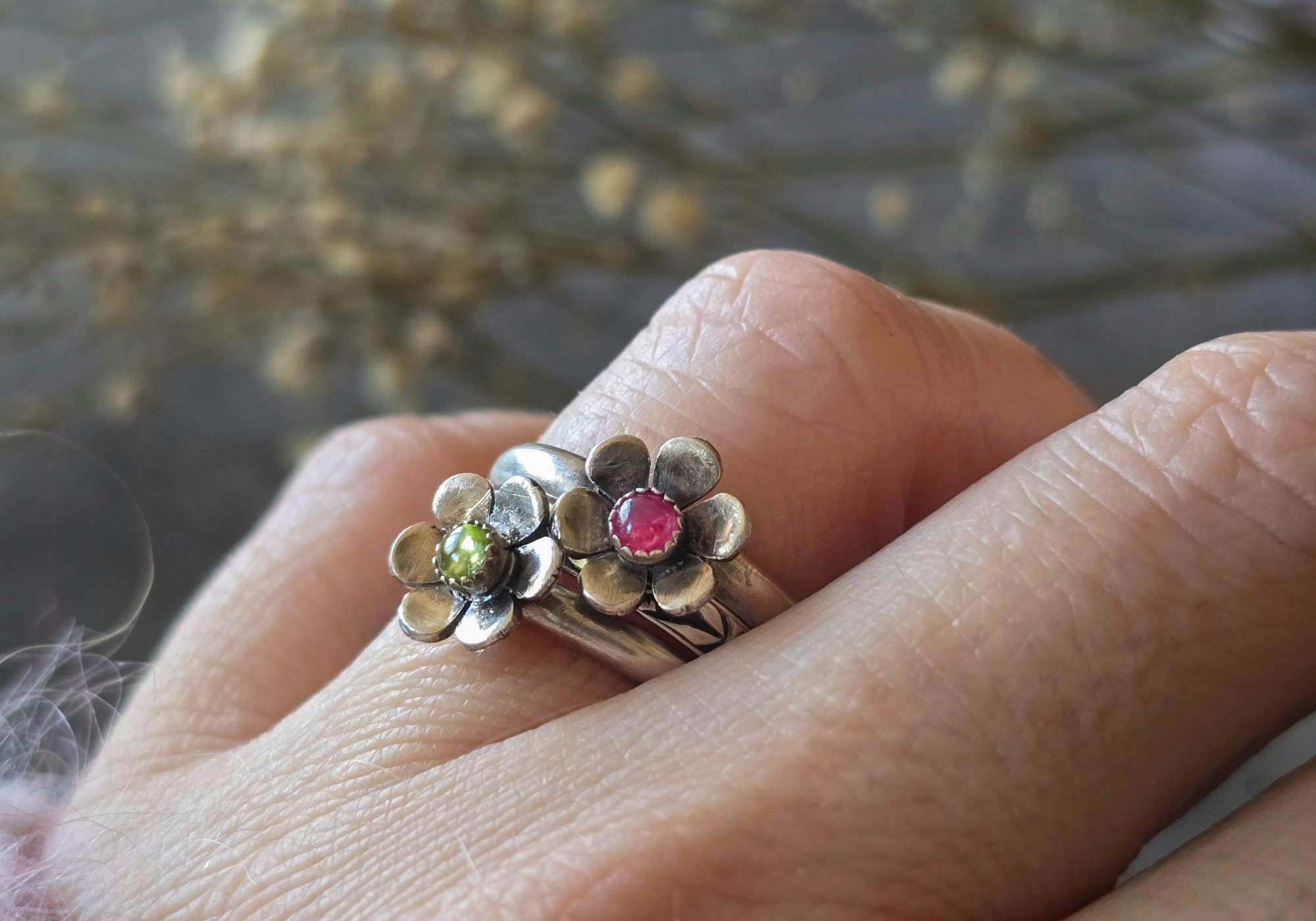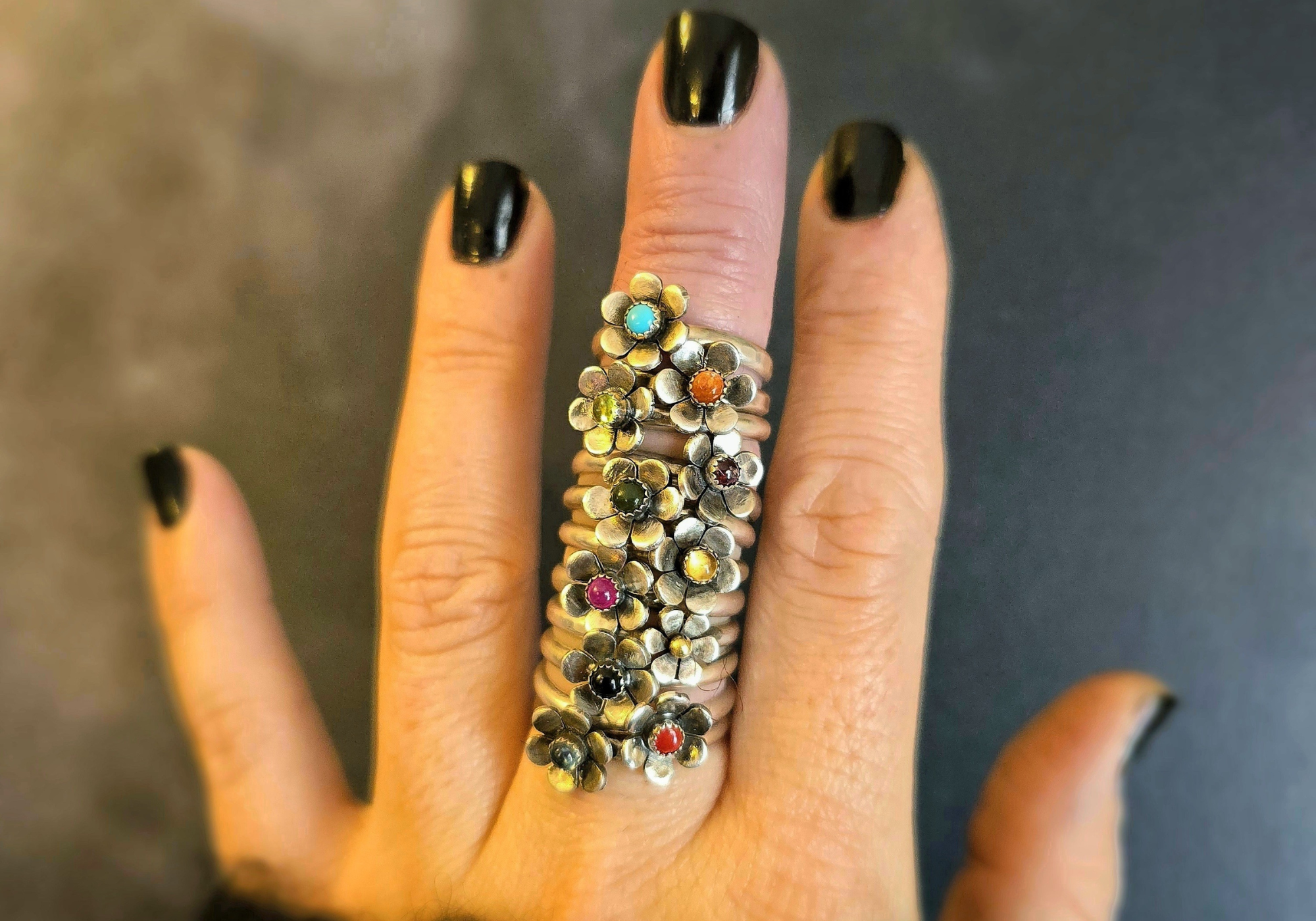 Every great stack needs a centerpiece. That’s where our flower stacking rings come in. Each one features a unique gemstone, from the fiery coral to the serene nephrite jade. These rings are like the stars of the show—they draw the eye and add personality to your look.